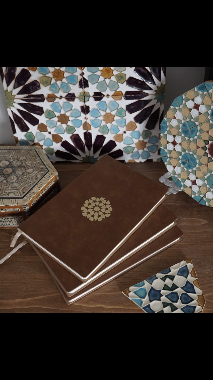 The Islamic Geometry Journal is a beautifully presented luxury journal/notebook created by award winning publisher Wooden Books. Bound within a leatherette cover, it comprises 160 pages of watercolour-quality paper, lined, gridded and blank, together with reproductions of 32 original drawings by Richard Henry gathered from his classes and study trips over the last 10 years.