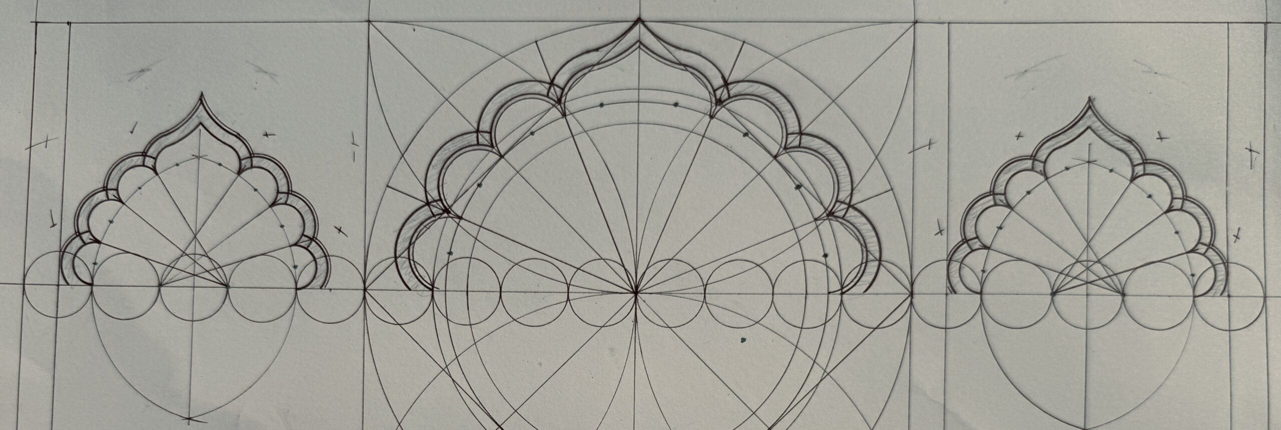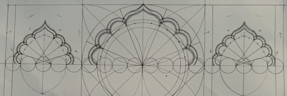 In Session One, we’ll focus on geometry and proportion — constructing a precise row of three arches using the same principles Mughal architects employed. You’ll discover how these arches, with their graceful multi-foil cusping, reflect a synthesis of Persian order, Islamic harmony, and Indian symbolic motifs. We’ll explore why certain arches use three lobes, nine foils, or ogee curves, and how symmetry shaped the Mughal vision of beauty.