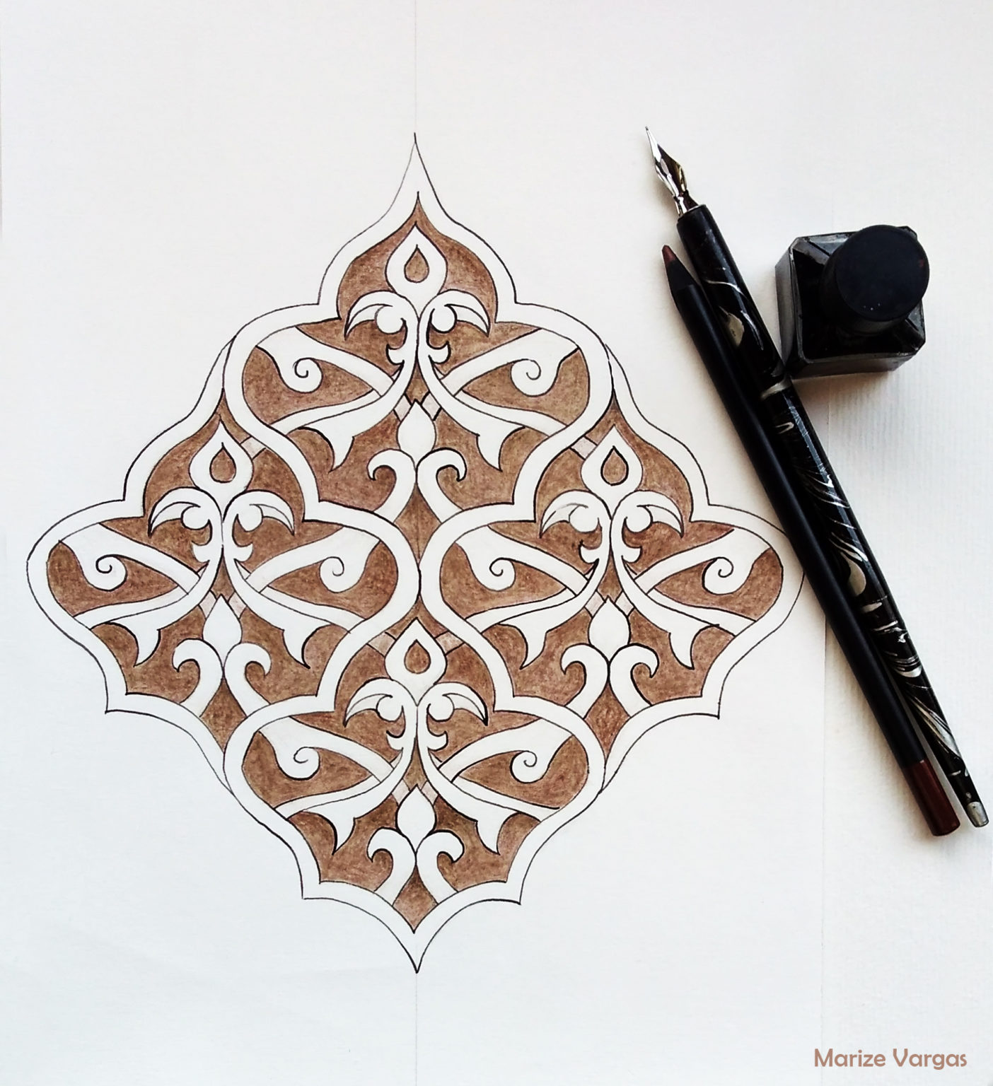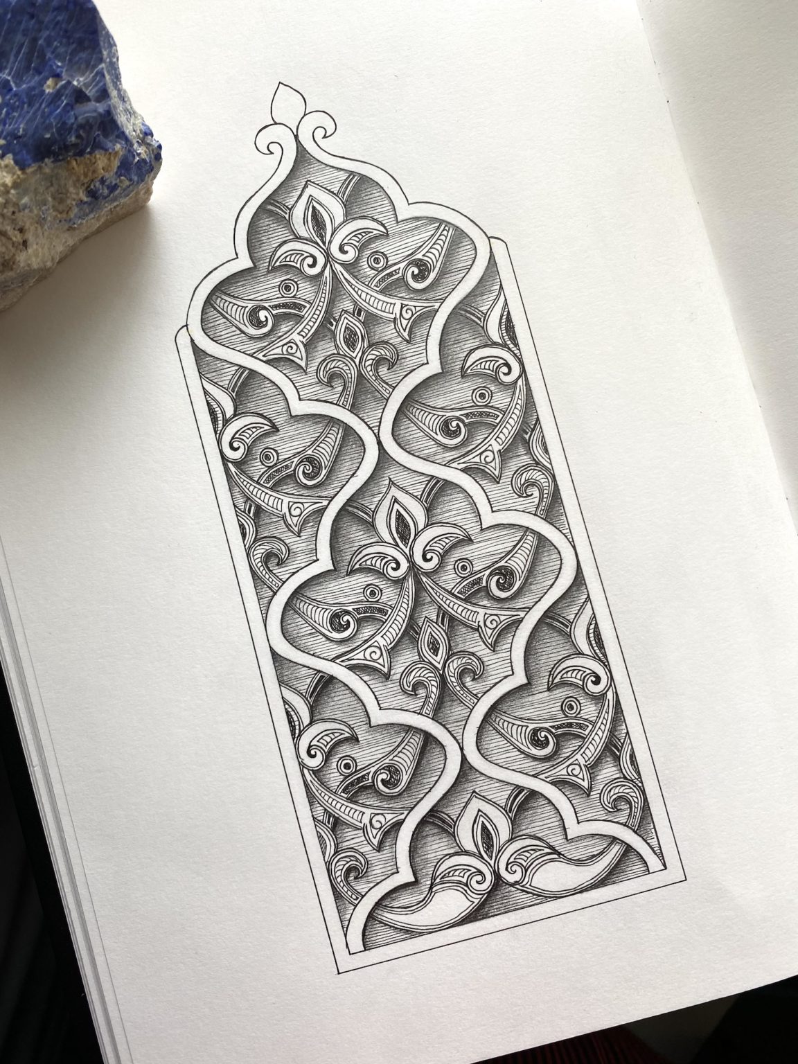 This class will combine both freehand and geometric elements. We will draw patterns that decorate the dome of Qanibay Al Rammah that overlooks Sultan Hasan Mosque and the famous dome of Aksunkor Mosque, called el-Azrak, or “the blue”, because of it’s vibrantly colored tiles. There will be an overview of the terminology associated within decorative forms and explore the various motifs and compositional devices.