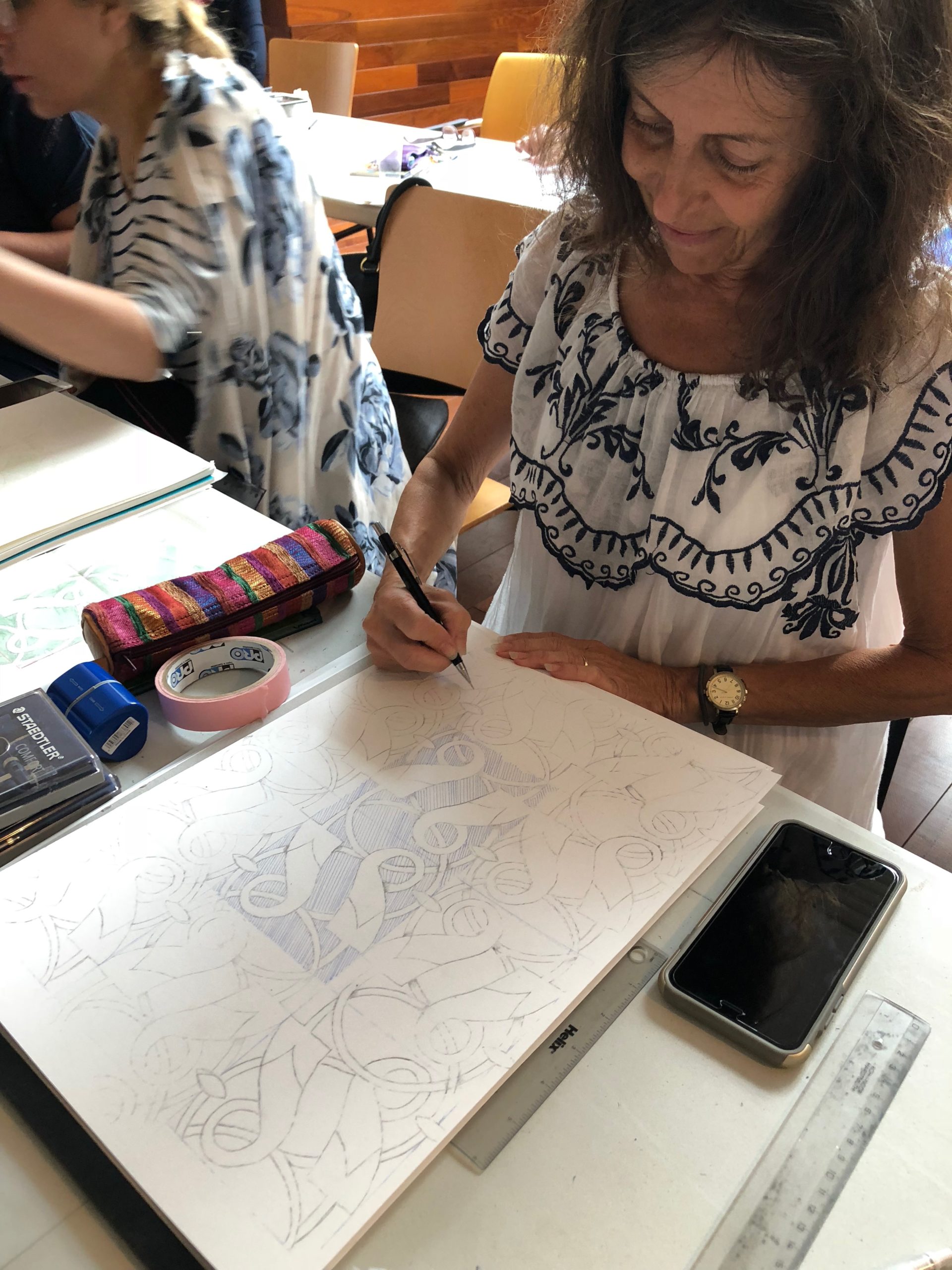 The act of drawing biomorphs teaches the artist to trust; working freehand and with freeforms involves engaging with chaos. Over time, the arabesque art develops muscle memory and this process becomes easier.