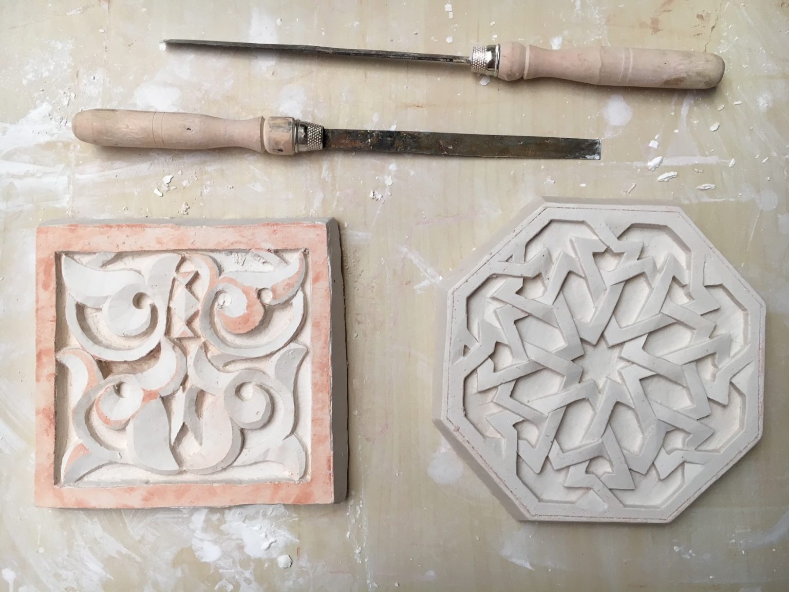 Participants will practice relief & piercing carving techniques and receive an introduction to plaster casting and mold making. There will also be to opportunity to use the zewana and traditional chisels from Morocco.