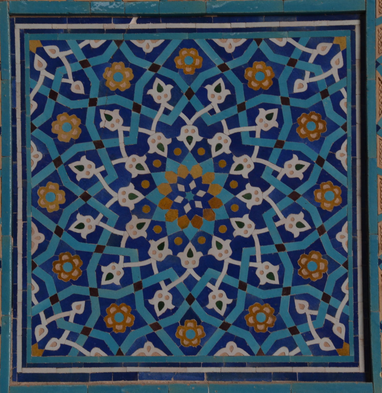 Draw this sublime geometric and biomorphic Persian pattern from the 14th Century Jāmeh Mosque of Yazd.
