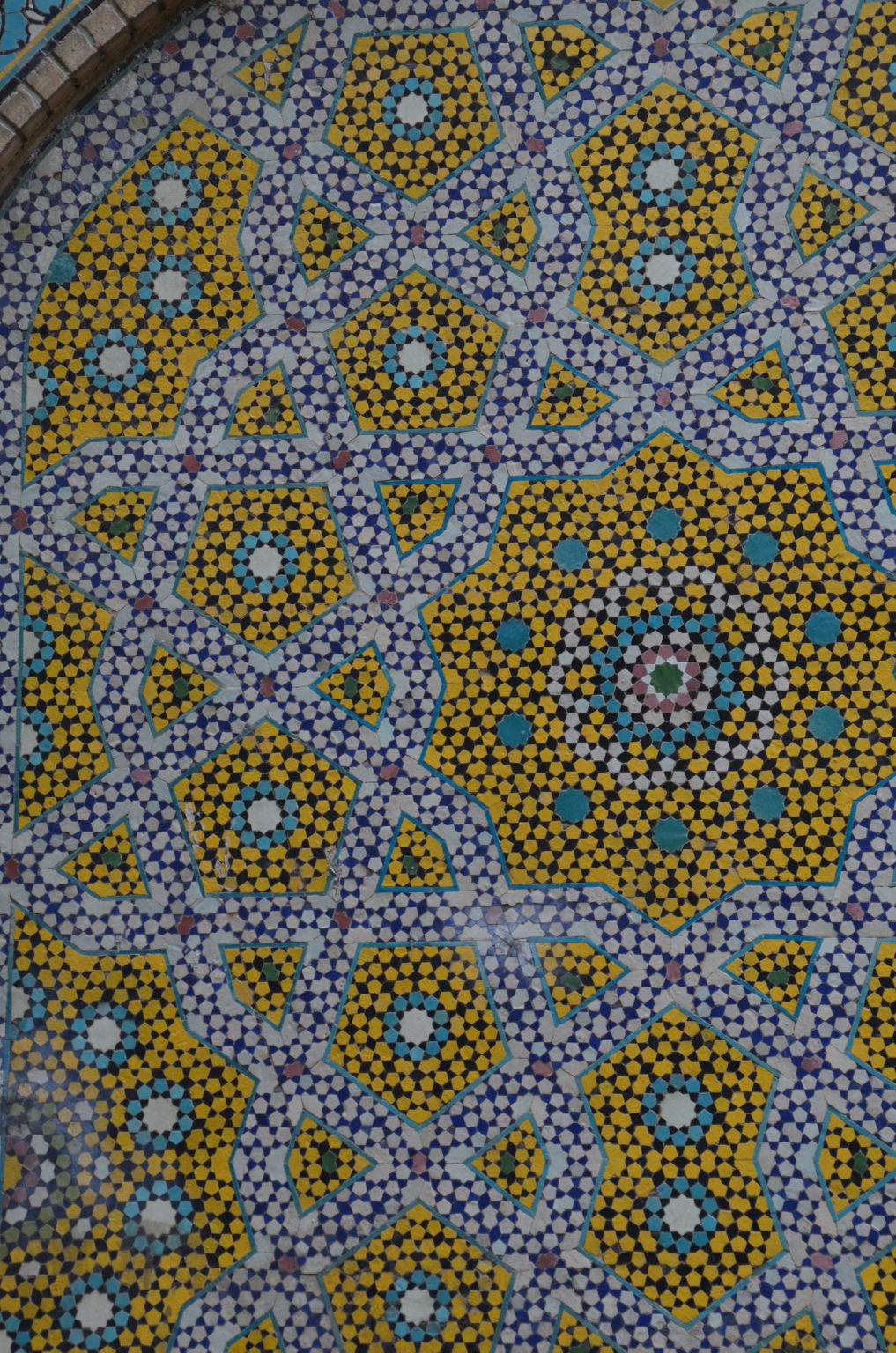 Draw this sublime geometric and biomorphic Persian pattern from the 14th Century Jāmeh Mosque of Yazd.