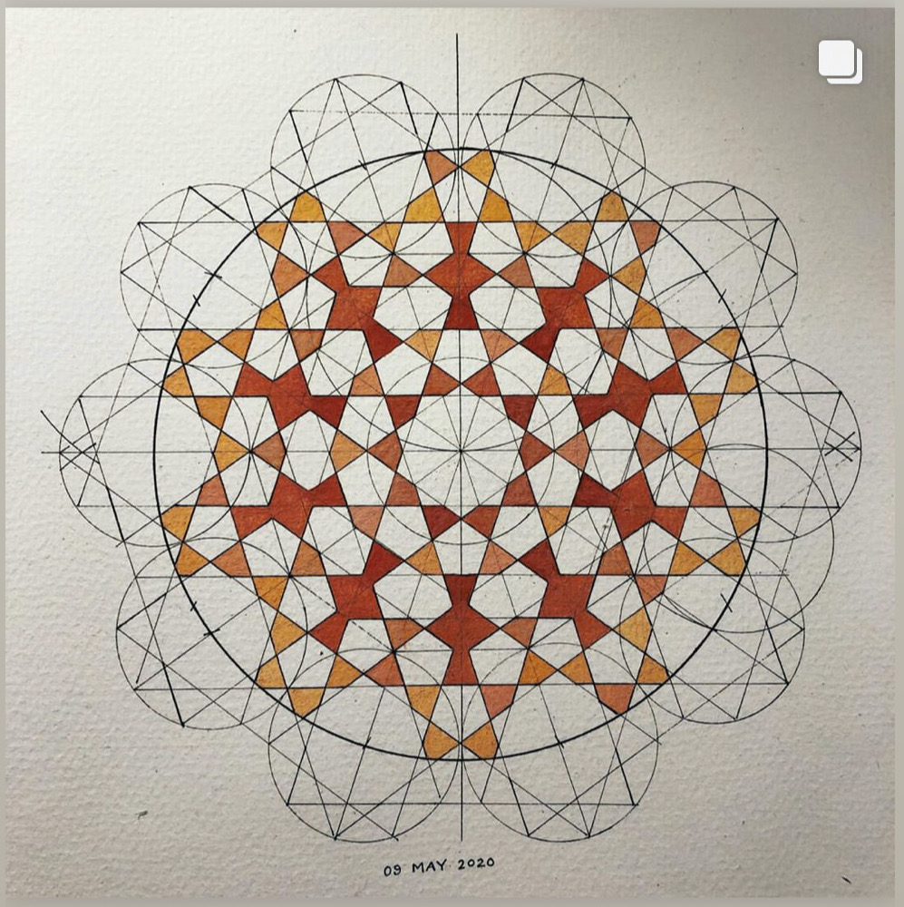 Over 2 sessions we will draw the geometric and biomorphic (arabesque) patterns from the famous Minbar of the Kutubiyya Mosque.