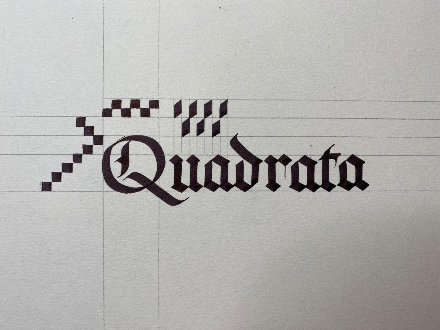 Textualis Quadrata was the basis of most the scripts used in the Gothic/Mediaeval period. It reflected the geometry used in the cathedrals and rose windows of the time by placing emphasis on the square, circle, quadrant, lozenge and vertical downstrokes.