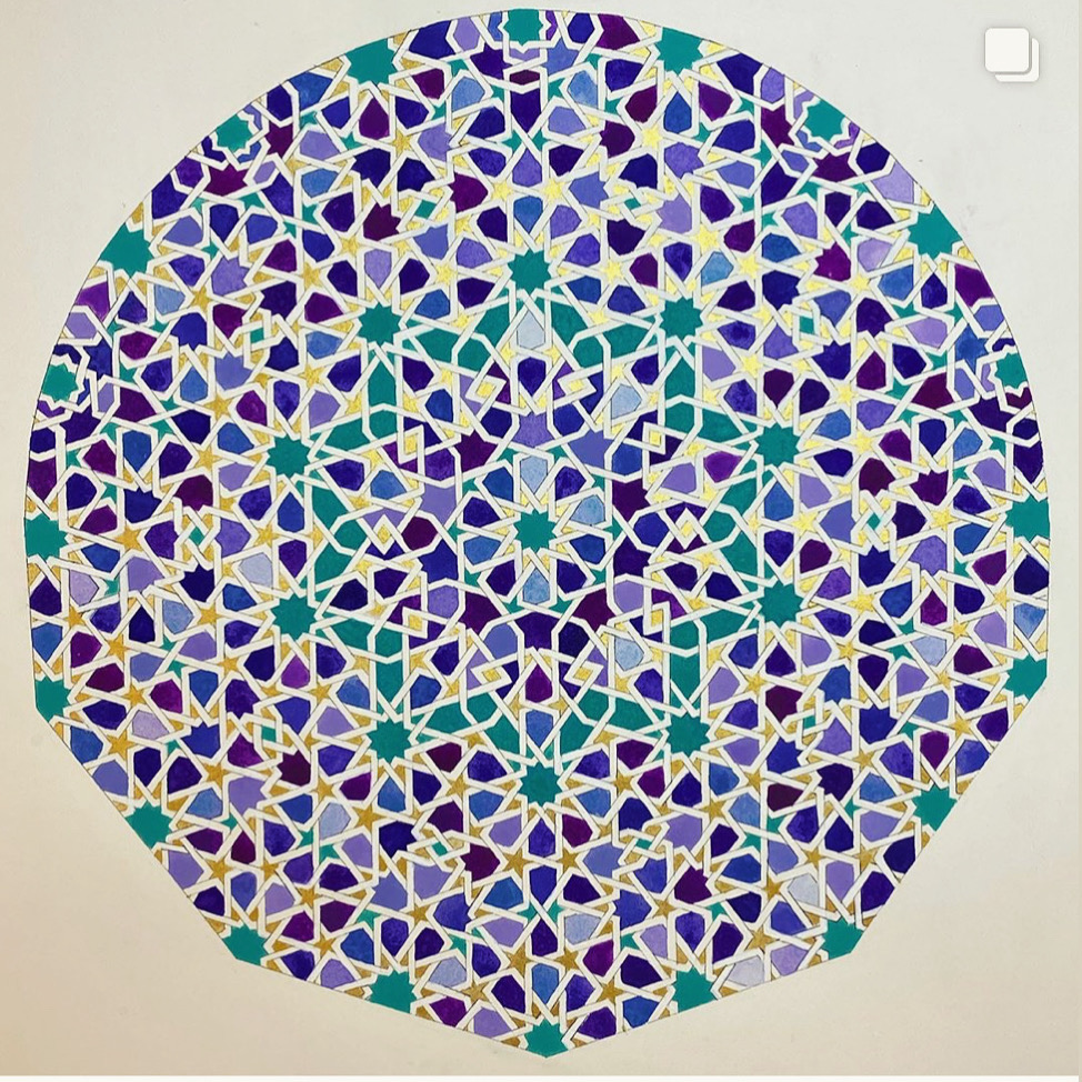 Over 2 sessions we will draw the geometric and biomorphic (arabesque) patterns from the famous Minbar of the Kutubiyya Mosque.