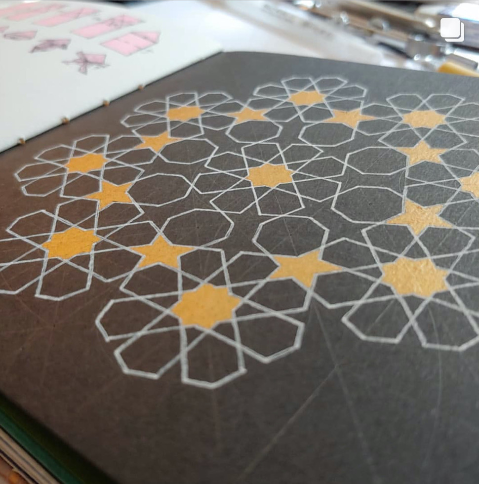 Over 2 sessions we will draw the geometric and biomorphic (arabesque) patterns from the famous Minbar of the Kutubiyya Mosque.