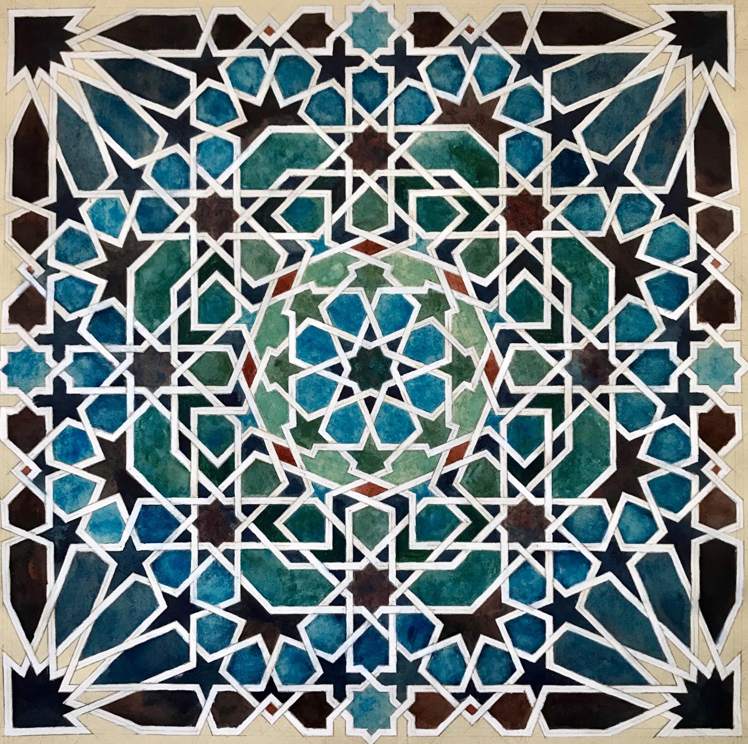 We will draw a series of Alicatados (cut ceramic) rosettes and look at the alternative centres and weaving techniques.