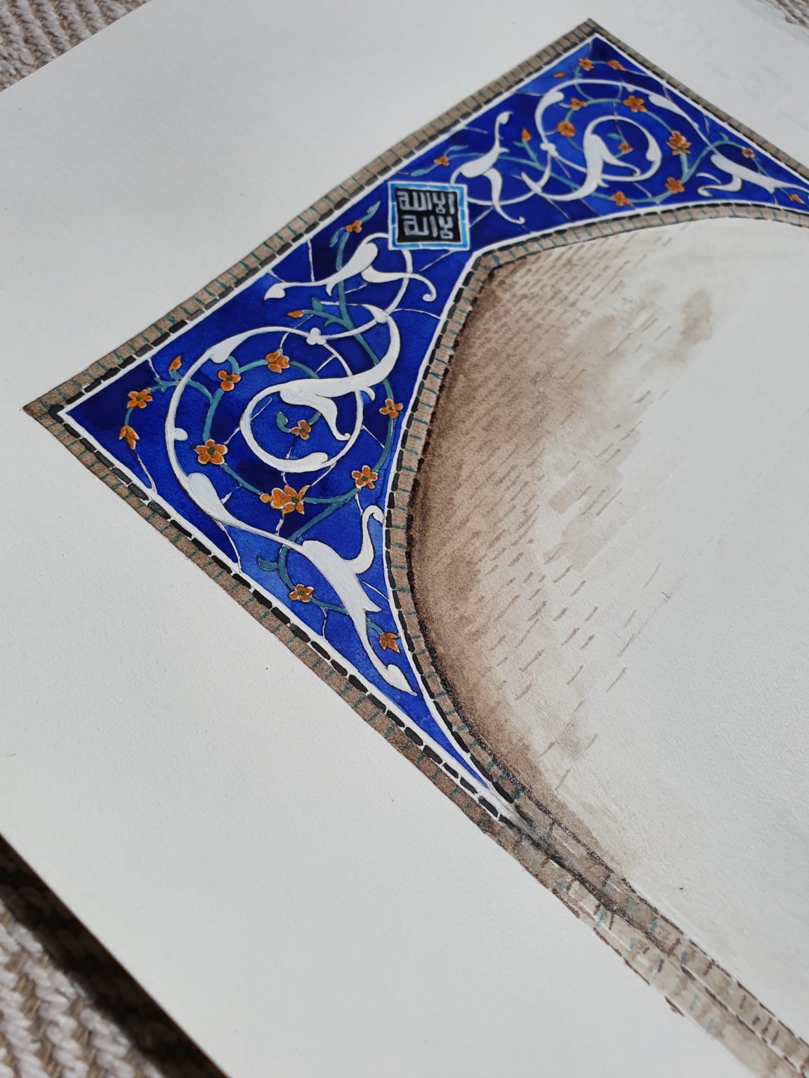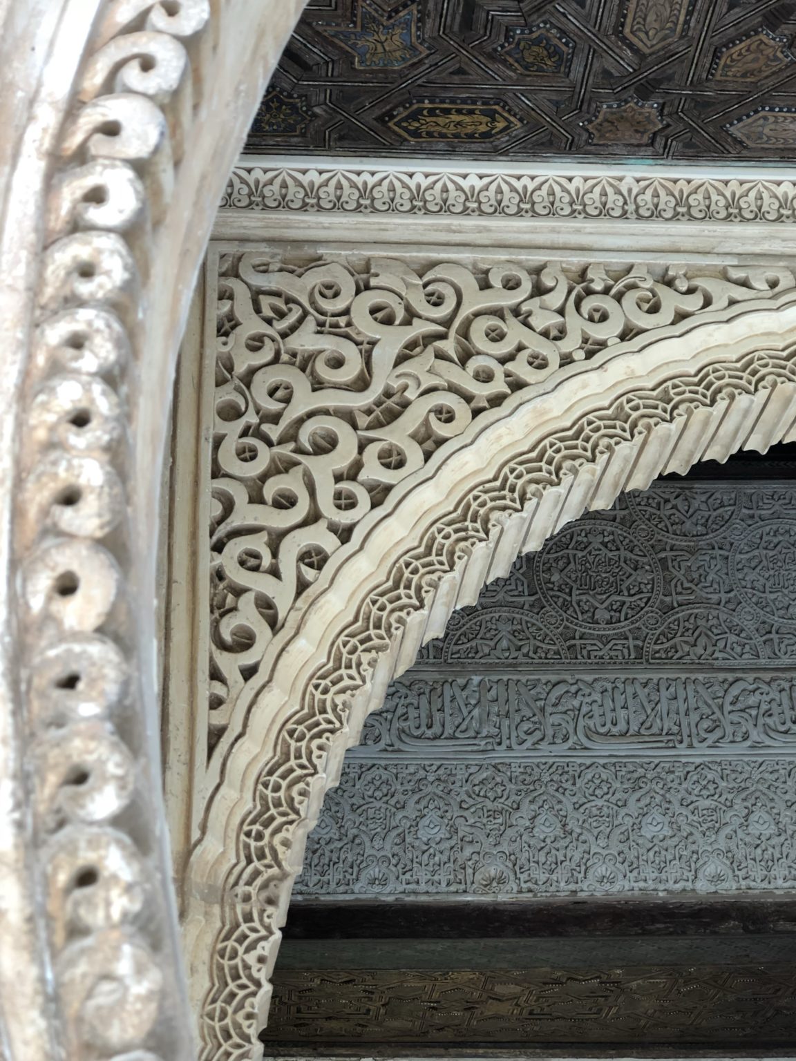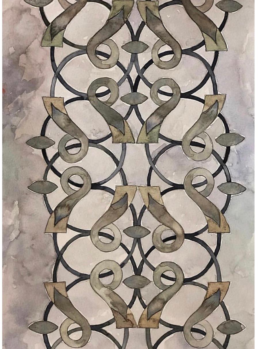 Draw 2 arches, including a classic Persian 2 centred arch and ceramic halaya and rumi spandrel decorative features plus a Morrish arch with stucco motifs and scalloped soffits.