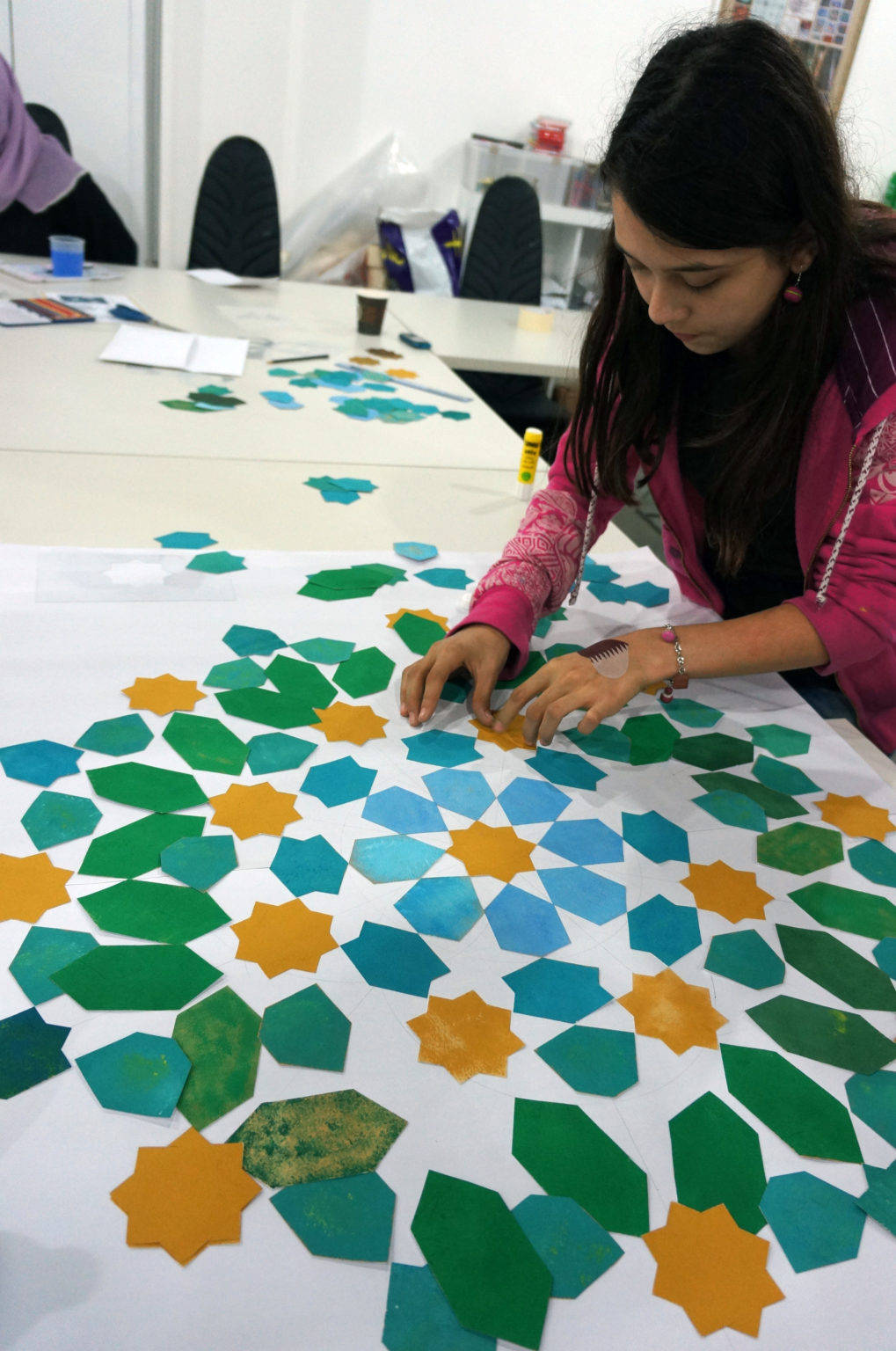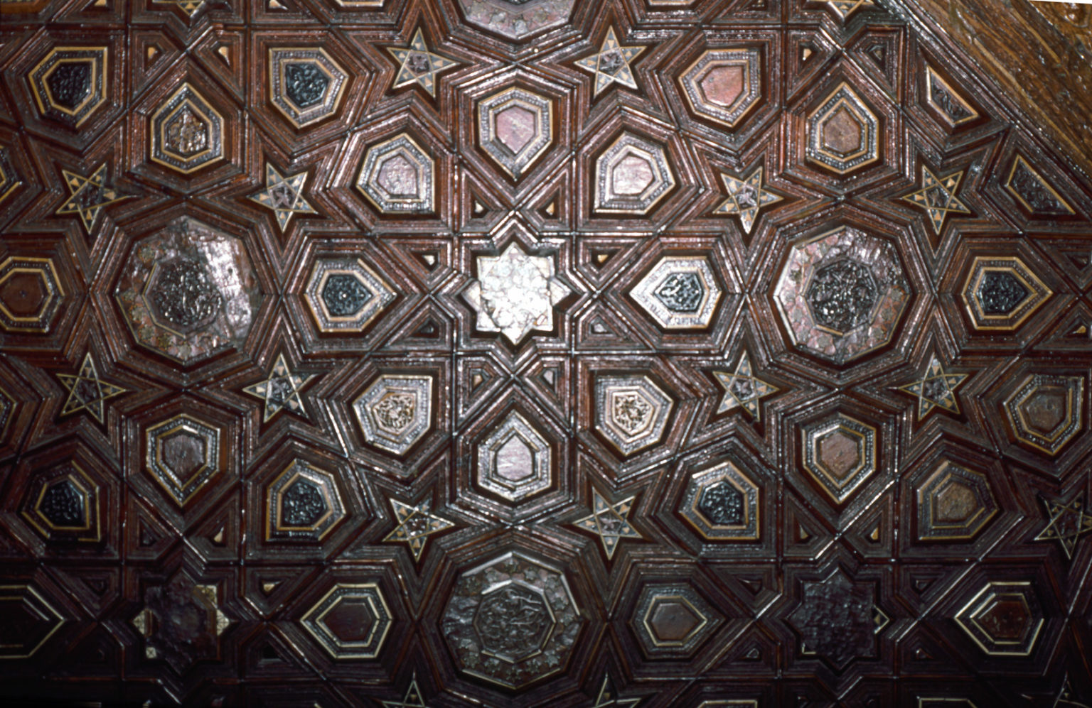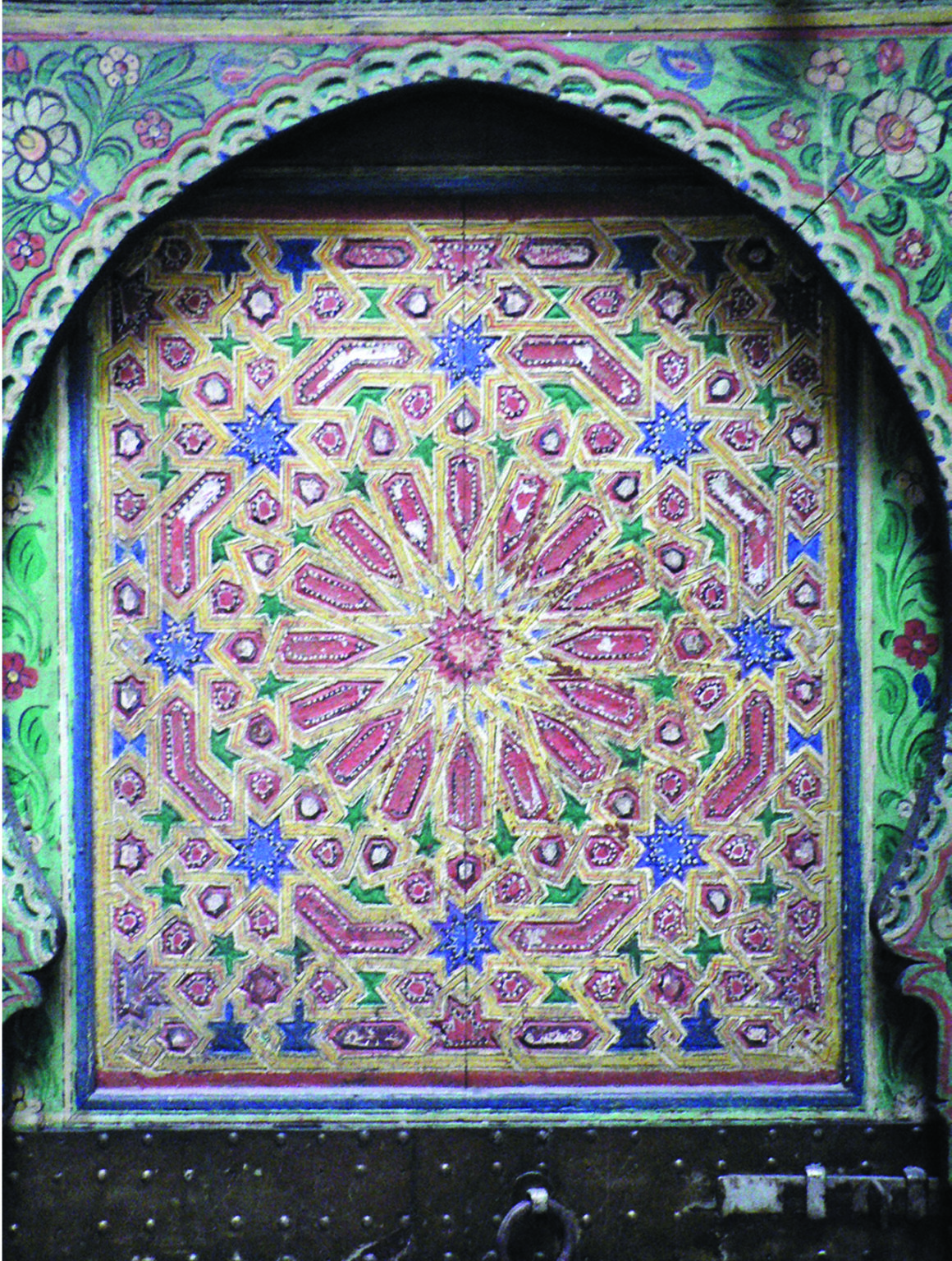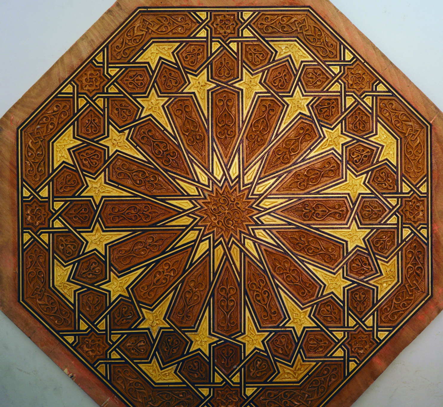 Patterns based upon 8-fold symmetry are found across the Islamic world and represent one of the three main families of symmetry in Islamic geometric art. In this workshop we will recreate the classic Moroccan 16-Fold Rosette surrounded by 8-fold rosettes, framed within an octagon (images above and below). We will consider this design within the context of a wider family of Moroccan designs and demonstrate how to establish the critical proportioning of the individual shapes with 100% accuracy. Each participant will receive a video recording, and supporting material, including a PDF handout detailing the steps undertaken to re-create each pattern, so that students can re-create the design at home after the class. Although this can be taken as a stand-alone workshop, we will build upon themes introduced in earlier workshops in the Exploring Islamic Geometric Patterns Series, which can be downloaded from our archive. (Scroll through gallery in banner above to see images of historical 8-fold designs and former students’ work).