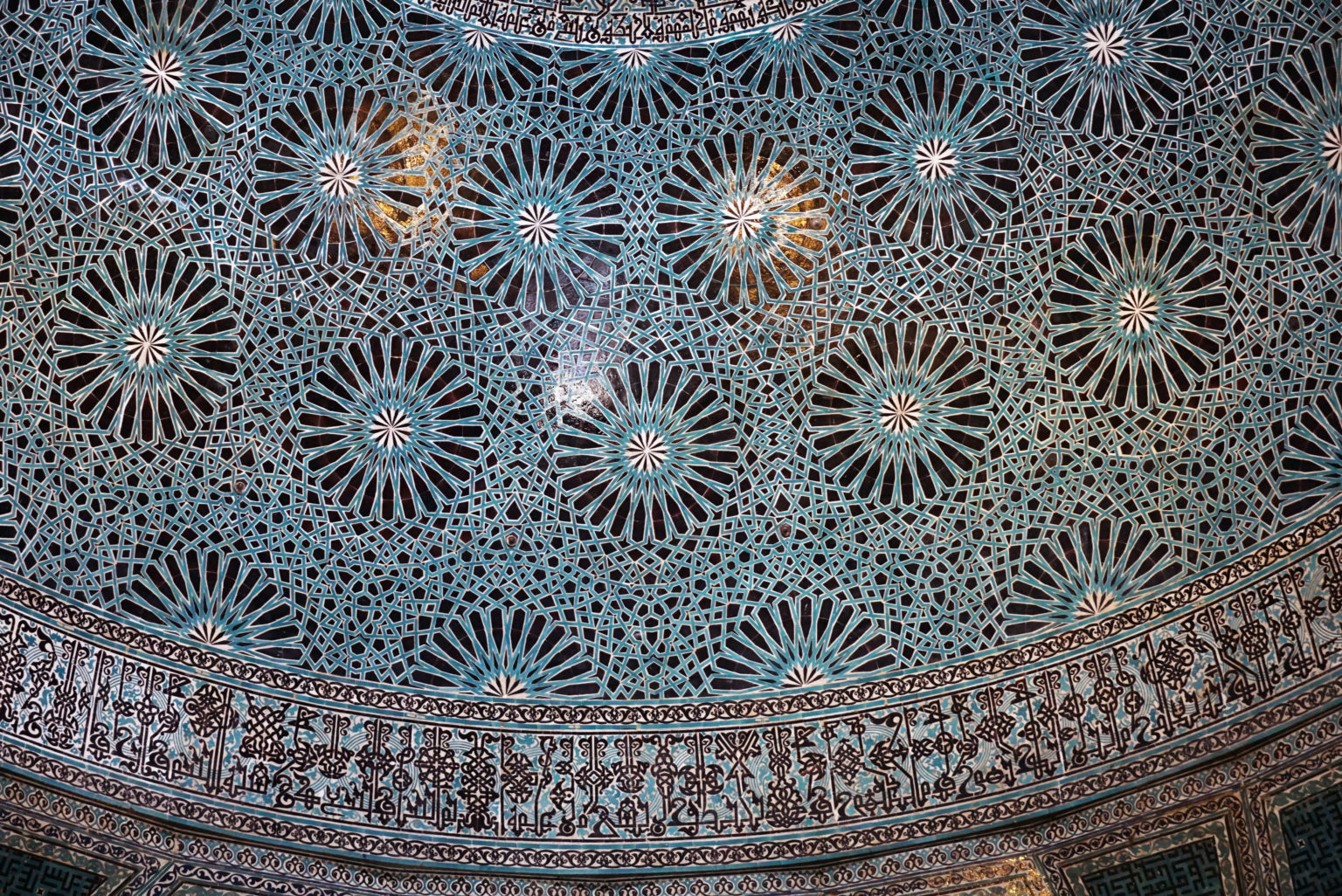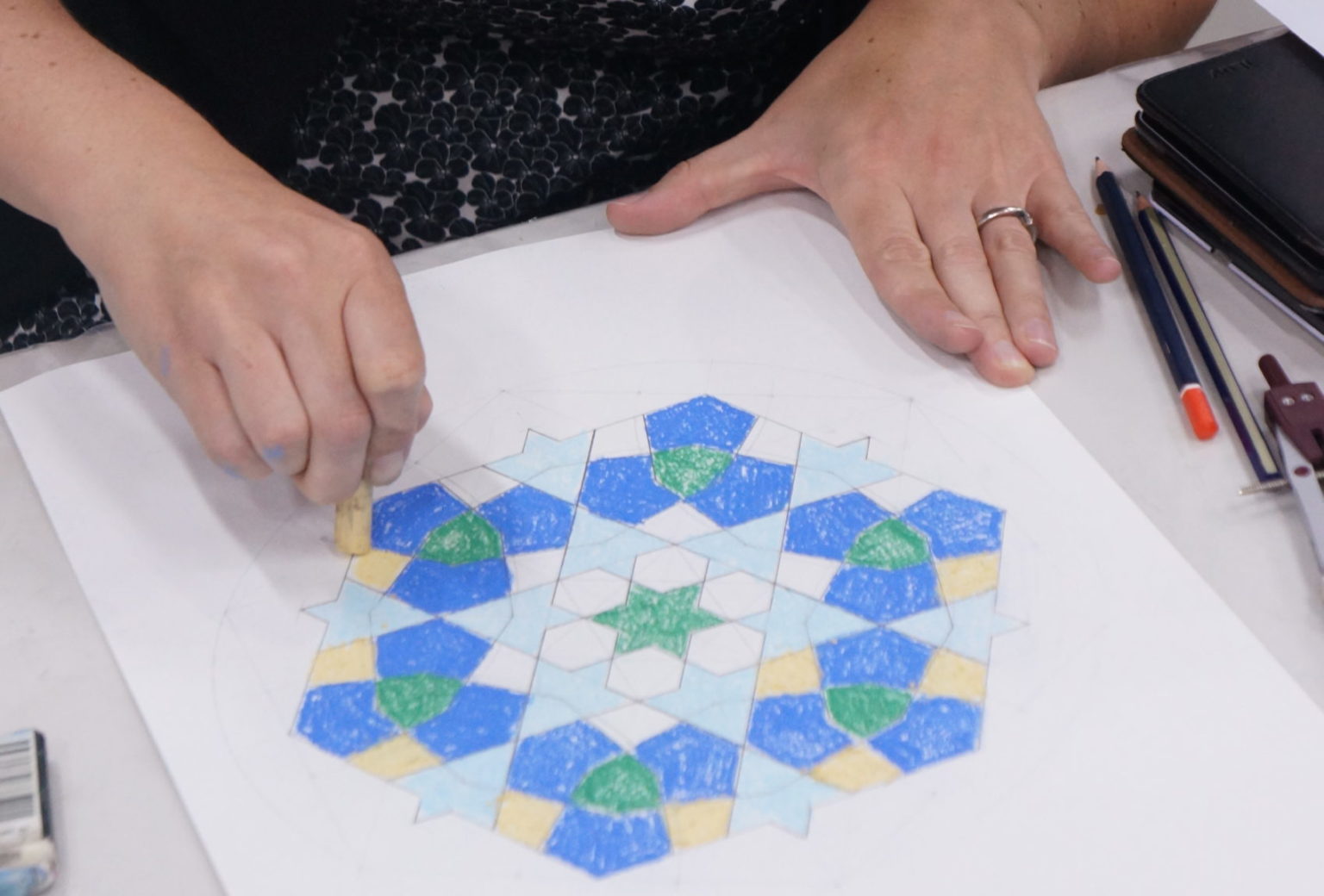 This is the first of an ON-LINE series of workshops exploring 6 and 12-fold symmetry. Patterns from this family arguably the most universal found across the Islamic world and offer the perfect introduction to Islamic geometric art. Using the traditional tools of compass and straight edge we will recreate a classical design based upon this symmetry. There will be a brief contextual slide lecture referencing the underlying symbolism of this family of patterns and illustrating their historical occurences. Each participant will receive a PDF handout detailing the steps undertaken to re-create the design covered in class, so that students can re-create the design at home later. The course content will complement, but differ from our other ON-LINE courses. (Scroll through gallery in banner above to see images of historical 6-fold designs and former students’ work ).