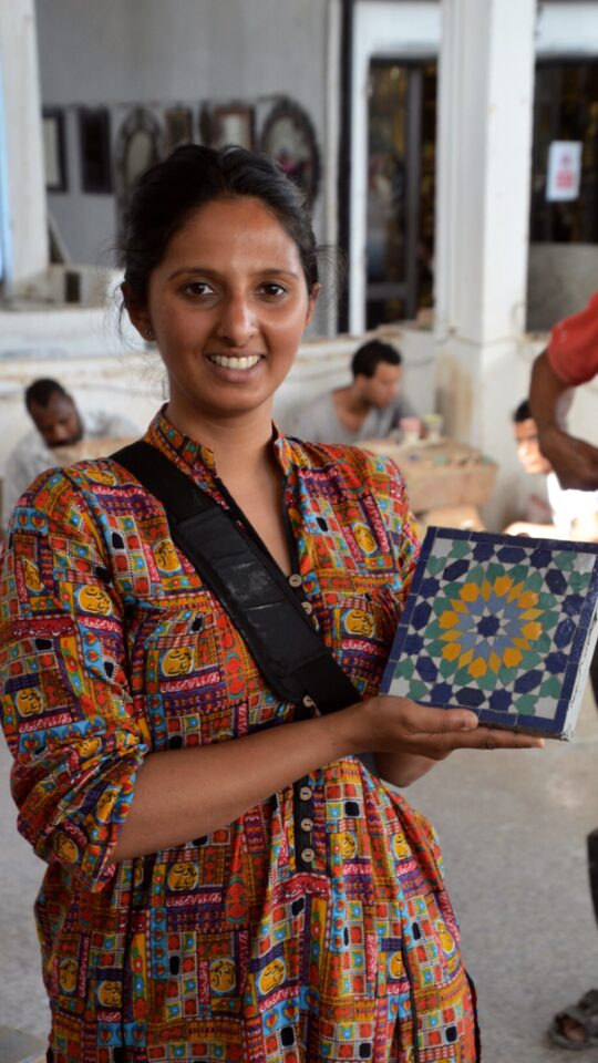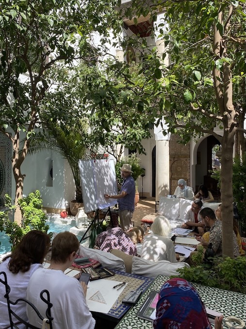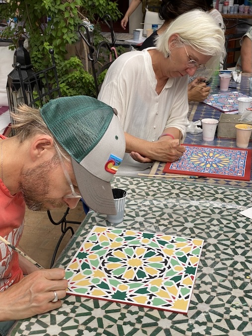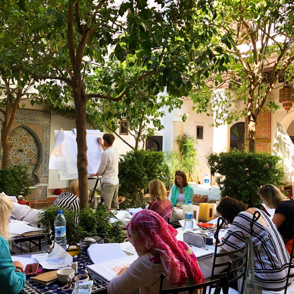The course will be hosted in a beautiful traditional riad in the heart of the medina and offers the opportunity to experience making geometric and biomorphic designs using traditional methods in the context of a UNESCO world heritage site. There will be a traditional Zouak painting with a local master. Participants will make their own set of donkey hair brushes and complete a floral and woven geometric panel.